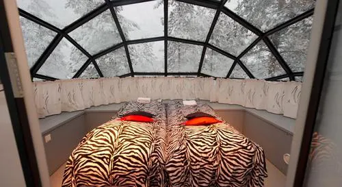 L’hôtel propose 148 chambres. Les igloos sont construits en verre thermique, permettant de garder la chaleur dans des conditions arctiques. Tous sont pourvus de lits de luxe et de toilettes privées, tandis que les douches sont communes sauf certaine avec un sauna. Les chalets comportent des équipements de cuisine, un coin salon, une cheminée et un saua privé.
